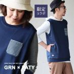 ベスト プルオーバー スウェット クルーネック 前後 配色 切り替え インディゴ コラボ メンズ レディース grn×PATY (予約販売)
