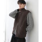 ベスト ダブルジップ畔編みドライバーズニットベスト ジップベスト